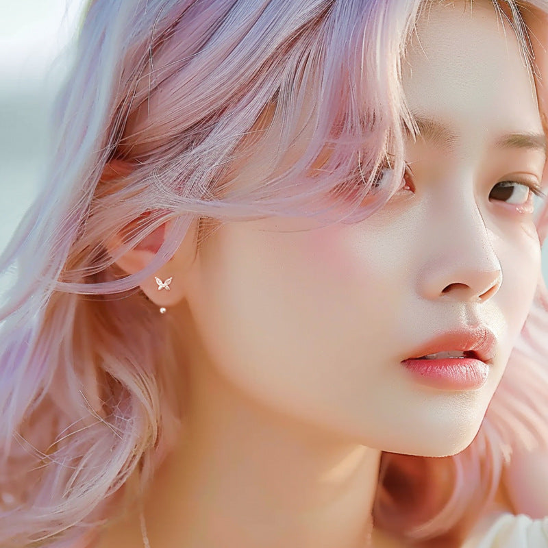 S999 Sterling Silver Butterfly Stud Earrings For Women, Screw Back Cartilage Earrings, Niche Design Dainty Exquisite Elegant Jewelry